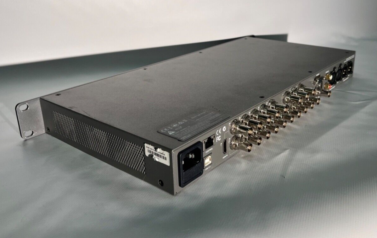 SDI-Videoeingänge: 10 x 10 Bit, zwischen SD/HD/Ultra HD 4K umschaltbar. 2 eingebettete Audiokanäle